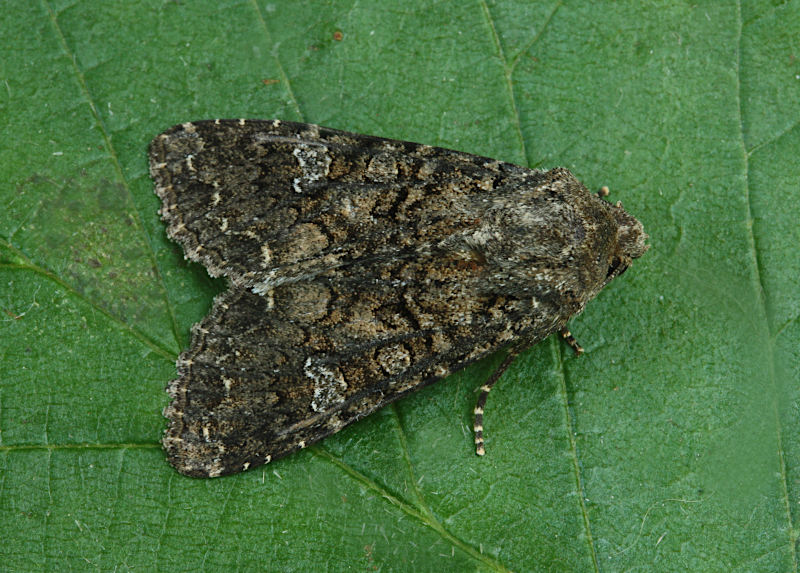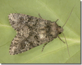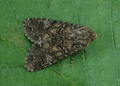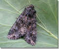 Dot Moth Melanchra persicariae, but much less obviously black and white then this species. Larva polyphagous, but with a preference for