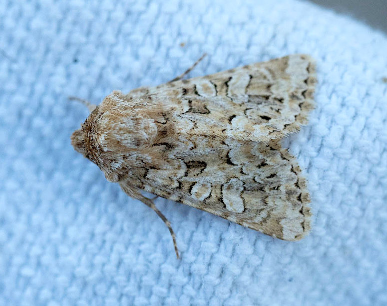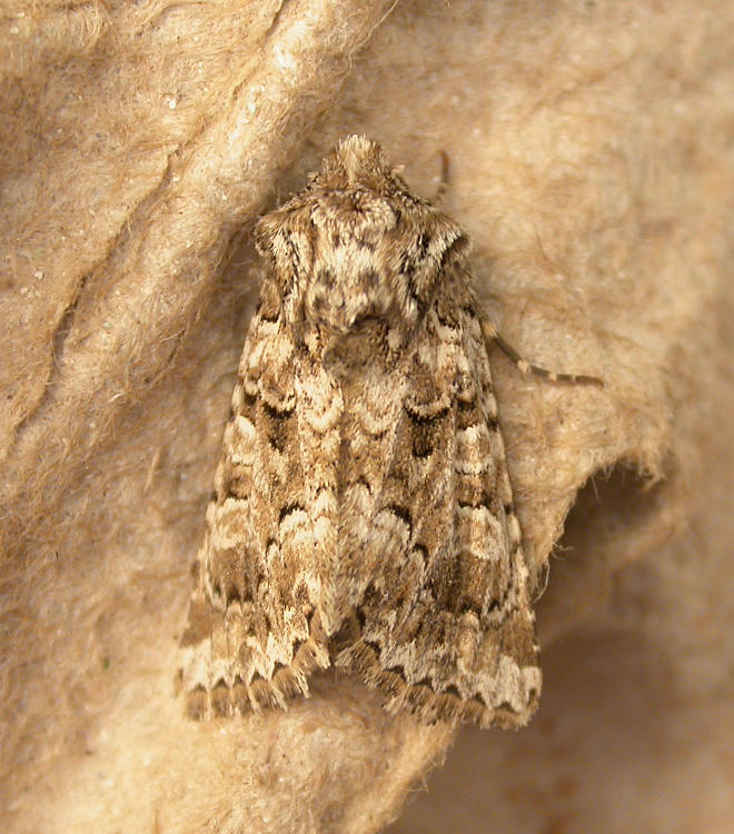 Lychnis Hadena bicruris which is larger, ground colour brown to dark brown, apex of forewing more obtuse, dorsal extremity of subterminal line parallel to termen; pale examples of Tawny Shears are superficially similar to