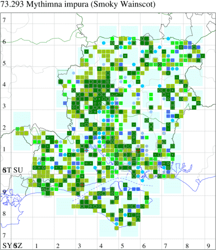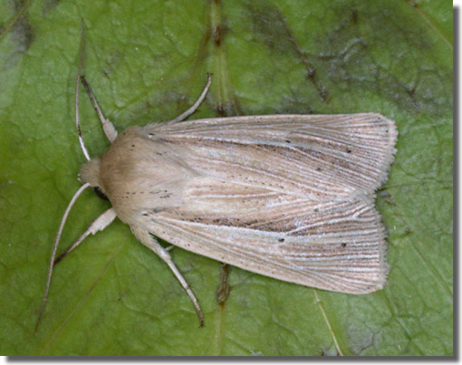 Common Wainscot M. pallens, but differs from this species especially in the dusky grey underwing, which can be seen by gently lifting up the forewing with forceps. Larva feeds on various grasses, including Cock's-foot and Common Reed.