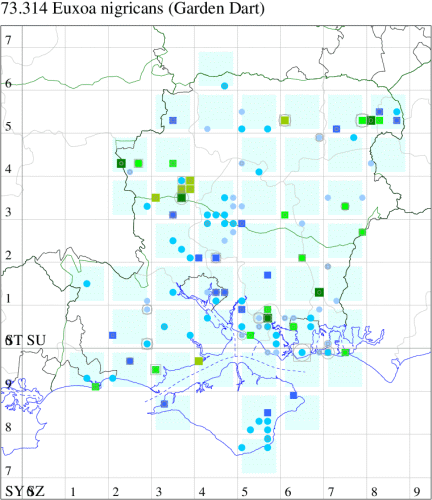 Local in gardens, allotments and farmland, and on downland and rough ground throughout the British Isles, a species of conservation concern under the UK Biodiversity Action Plan. In Hampshire and on the Isle of Wight there are still scattered records, but numbers have declined drastically recently, and records will no longer be accepted without convincing evidence. Wingspan 32-40 mm. Some forms can be confused with