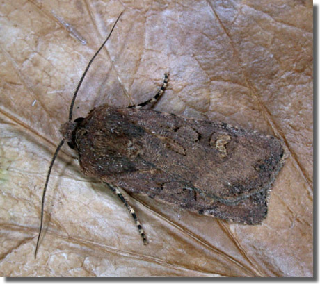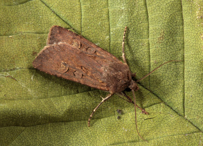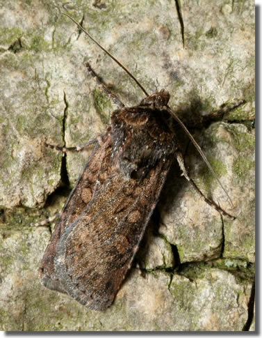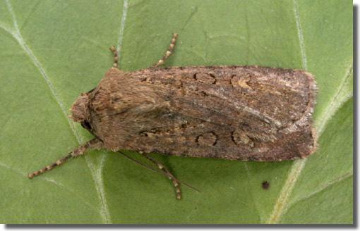 Square-spot Rustic Xestia xanthographa (MBGBI Vol 9). Larva feeds on various herbaceous plants, including Clover, Dock and Plantain, over-wintering as an egg or small larva.