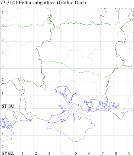 Occurrence in the British Isles unconfirmed. This native of North America is included on the British list on the basis of an individual said to have been taken near Barnstable, north Devon prior to 1829. Wingspan 30-40 mm. Larva feeds on Tobacco and cereal crops, causing sufficient damage to be a serious pest in some areas, over-wintering as a pupa; no evidence of breeding in the UK.