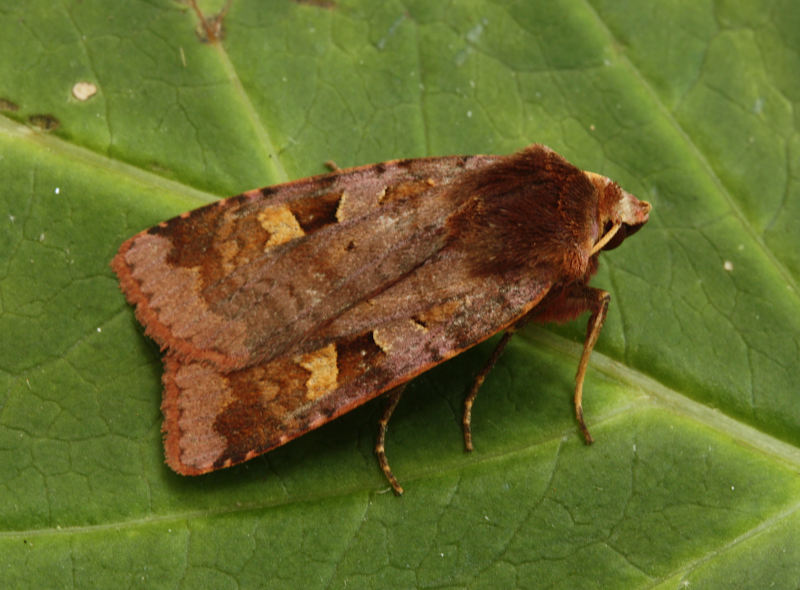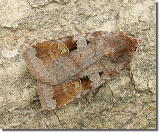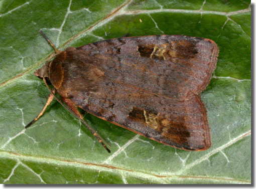 Common in broad-leaved woodland and wooded heathland throughout much of the British Isles. In Hampshire and on the Isle of Wight much less common than formerly; in the summer of 1892, for instance, at Brockenhurst it was stated to be a continual pest at sugar. It occurs in deciduous woodland, and nowadays it is usually recorded as single specimens. Wingspan 36-45 mm. Distinguished from female