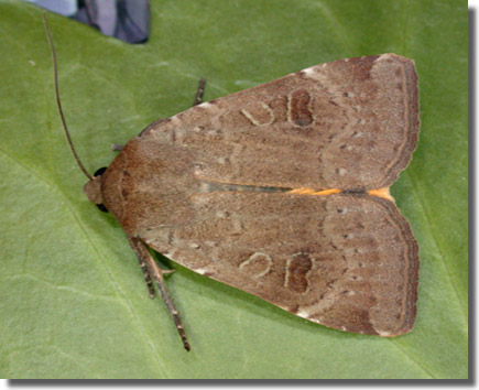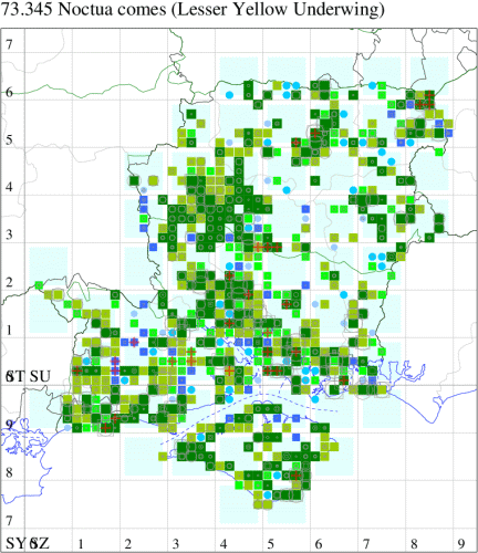 Common in a wide range of habitats, including gardens, downland, heathland, woodland and moorland throughout the British Isles. Widespread and common in Hampshire and on the Isle of Wight. Wingspan 38-48 mm. Could be confused with the much rarer Lunar Yellow Underwing N. orbona, which see. Larva feeds on Stinging Nettle, Broad-leaved Dock and Foxglove.