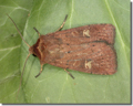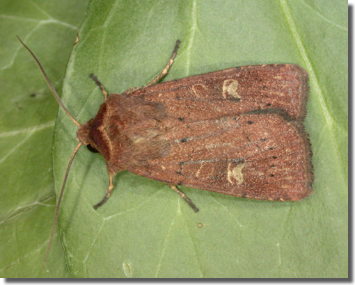 Garden Dart Euxoa nigricans has the forewing narrower and a conspicuous claviform stigma (MBGBI Vol 9). Larva feeds on various grasses.