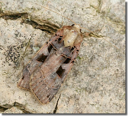 A specimen of this species must be retained for the record to be considered for acceptance. A photograph is NOT considered sufficient for the purpose. In autumn, larva feeds on herbaceous plants such as Primrose, Dandelion and Dock, and in spring on buds of Sallow, Dogwood and other woody plants.
