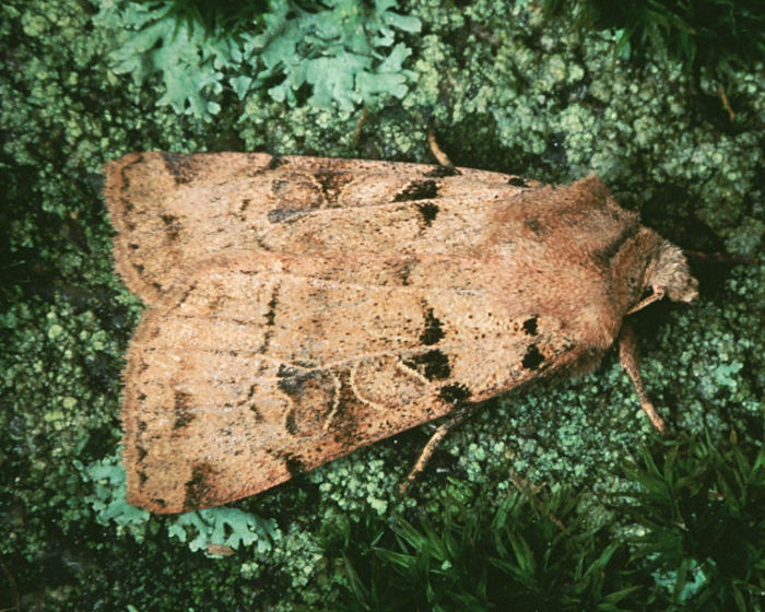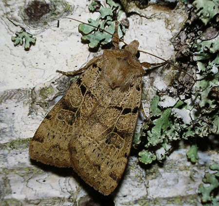 Nationally scarce (Nb) in broad-leaved woodland and rough grassland in parts of Scotland, northern England and north Wales. Unlikely to be recorded in Hampshire or on the Isle of Wight. Wingspan 36-44 mm. There are a number of dark brown streaks along the costa, especially bordering the orbicular stigma, the shape and positioning of which are diagnostic. Larva feeds on various herbaceous plants such as Primrose, Cowslip, Common Sorrel, Sheep's Sorrel, Stinging Nettle, White Dead-nettle, Red Dead-nettle and Greater Stitchwort.
