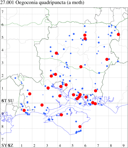 VC11: Linford Bottom, one, gen det, 05 Aug (CLew); Woodlands, NF, one, 30 Jun (RBW); Romsey, one, 30 Jul; one, 01 Aug (SRC); one, male, gen. det., 07 Aug; one, male, gen. det., 12 Aug (NRJ det. DJG); Dibden Purlieu, NF, one, 17 Jul (RAC); Bevois Valley, Southampton, present, 26 Jul; present, 27 Jul; present, 29 Jul (MCrei); West End, two, gen. det, 25 Jun; one, gen. det, 10 Jul; one, gen. det, 21 Jul (AMD); Stubbington, one, 25 Jun; one, 17 Jul; one, 19 Jul; one, 28 Jul; one, 30 Jul; one, 11 Aug (DPH); Fareham, one, 02 Jun; one, 22 Jun; one, 11 Jul; one, 20 Jul; one, 21 Jul; one, 22 Jul (ADT); one, 10 Jul; six, 11 Jul; two, 16 Jul; five, det gen , 23 Jul; one, 26 Aug (MLO); Portchester, one, 26 Jun; one, 26 Jul; one, 06 Aug; one, 16 Aug (DH-J); Portsmouth, one, 03 Jun; one, 22 Jun; one, 26 Jun; one, 11 Jul; one, 17 Jul; one, 18 Jul; one, 29 Jul; one, 01 Aug (IRT); Waterlooville, one, 12 Jul (DWhe det. KKer); Christchurch: Cross Way, one, 18 Jun; one, 01 Jul; one, 02 Jul; one, 21 Jul; one, 24 Jul; one, 26 Jul; one, 29 Jul; one, 30 Jul; six, 31 Jul; two, 01 Aug (LPyk); Sway, two, 18 Jul; one, 21 Jul; one, 23 Jul; one, 30 Jul; two, 01 Aug; one, 05 Aug; one, 06 Aug; one, 11 Aug; one, 13 Aug (SKee); Sinah Common, one, at dusk, gen. det, 23 Jul (AMD);