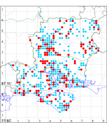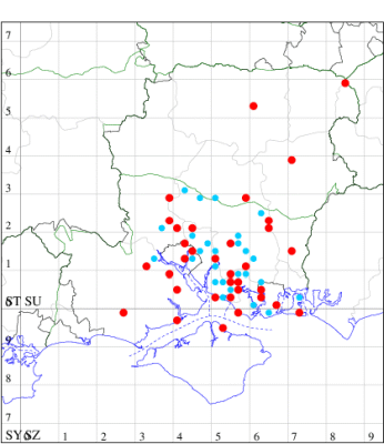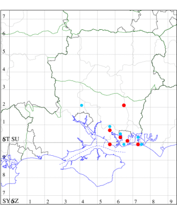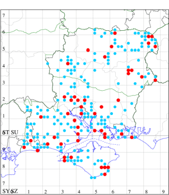 For the maps, all records prior to 2022 are shown by a blue dot (the larger the dot, the more recent), with the current year's records shown in red. As previous records are superimposed on any report for 2022, new sites have greater emphasis (i.e. will show as 'more red').