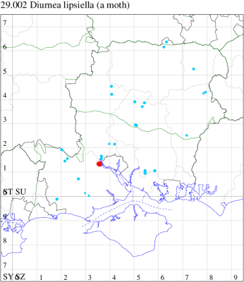 VC11: Brockwood, one, 08 Apr (SDut); Copythorne, one, 02 Apr (JAda); Woodlands, New Forest, present, 13 Mar (RBW); Ashurst, NF, one, 19 Mar (SAB); Totton, one, 16 Mar; one, 17 Mar; one, 18 Mar (LH); Romsey, two, 16 Mar; one, 25 Mar (MB); Kings Somborne, four, to actinic, 14 Mar (GCE); Romsey, three, 10 Mar; four, 11 Mar; six, 13 Mar; one, 15 Mar; five, 17 Mar; one, 25 Mar; one, 05 Apr; one, 07 Apr; one, 12 Apr (NRJ); Kings Somborne, four, to actinic, 14 Mar; one, to actinic, 14 Mar; four, to actinic, 14 Mar; Hursley, three, to actinic, 14 Mar; Ashley, five, to actinic, 17 Mar (GCE); Southampton, one, 05 Apr; one, 07 Apr (MEdg); Eastleigh, one, to actinic, 16 Mar (KArb); Kings Somborne, 10, to actinic, 17 Mar; eight, to actinic, 17 Mar; seven, to actinic, 17 Mar; Ashley, five, to actinic, 17 Mar; Kings Somborne, four, to actinic, 17 Mar; one, to actinic, 17 Mar; Sparsholt, one, to actinic, 18 Mar (GCE); Botley Wood, 52, ♂s, 13 Mar (F.M.G.); 30, 17 Mar (KJW); Fareham, one, field observation, 10 Mar; one, 13 Mar; two, to actinic, 17 Mar (ADT); one, to actinic, 02 Apr (MLO); one, 18 Mar (KJW); Botley, one, to actinic, 24 Feb; one, to actinic, 25 Feb; one, to actinic, 10 Mar (SLB); Fareham, one, 11 Mar (JGe); Burton, nr Christchurch, one, 06 Mar; four, 14 Mar (JSw); Pennington, one, 15 Mar (RFC);