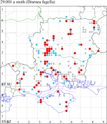 For species seen in 2022 that had less than or equal to 100 records, full details are included; for more common species, the earliest, latest and highest count by vice-county are shown. The narrative for each species is taken from the main Hantsmoths website, and it is possible that some information on abundance and occurrence can get out of date, as it is impossible to keep up with all changes; however it should give a good introduction to each species. The tables in each species account summarise the previous status, and that for the current year.