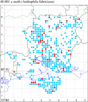 For species seen in 2021 that had less than or equal to 100 records, full details are included; for more common species, the earliest, latest and highest count by vice-county are shown. The narrative for each species is taken from the main Hantsmoths website, and it is possible that some information on abundance and occurrence can get out of date, as it is impossible to keep up with all changes; however it should give a good introduction to each species. The tables in each species account summarise the previous status, and that for the current year.