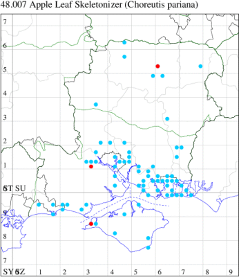 For the maps, all records prior to 2021 are shown by a blue dot (the larger the dot, the more recent), with the current year's records shown in red. As previous records are superimposed on any report for 2021, new sites have greater emphasis (i.e. will show as 'more red').