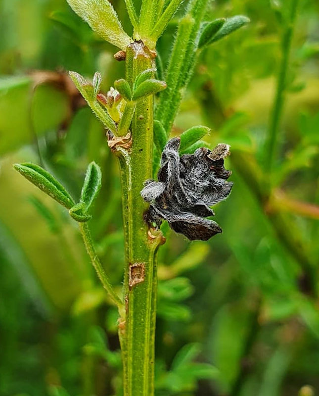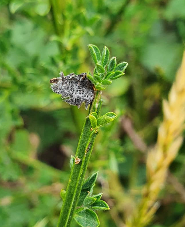 VC10: Newtown Meadows, larva, 13, field observation, larval cases on Dyer's Greenweed, 17 May; larva, 50, field observation, 11 Jul; one, field observation, emerged from larval case collected, 29 Jul (IOu)