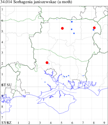 For the maps, all records prior to 2023 are shown by a blue dot (the larger the dot, the more recent), with the current year's records shown in red. As previous records are superimposed on any report for 2023, new sites have greater emphasis (i.e. will show as 'more red').