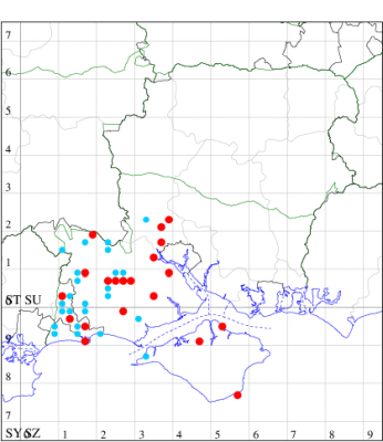 For the maps, all records prior to 2022 are shown by a blue dot (the larger the dot, the more recent), with the current year's records shown in red. As previous records are superimposed on any report for 2022, new sites have greater emphasis (i.e. will show as 'more red').