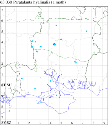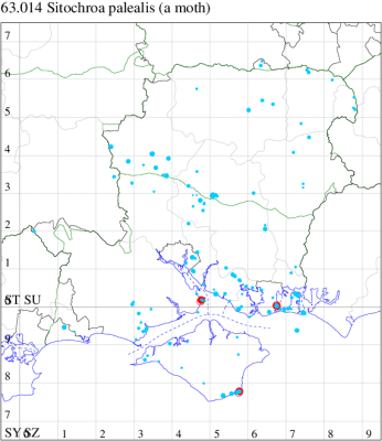 VC10: Chessell, one, field observation, 24 Jul (DNor); Cranmore, present, to actinic, 13 Jun (CHic); Bonchurch, one, 08 Jun; one, 17 Jun (JHa); Rookley, one, to actinic, 17 Jul (JBa);