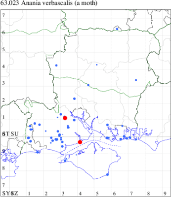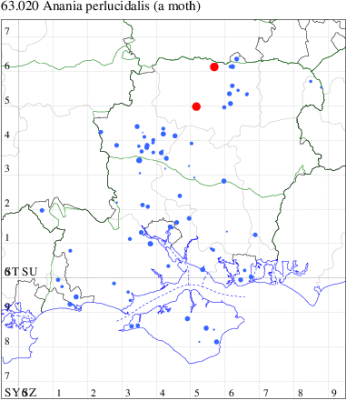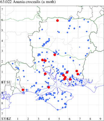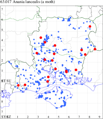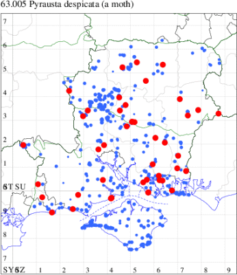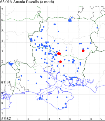 VC11: Marchwood, one, 17 Jun; one, 24 Jun (CTha); Fishlake Meadows, one, 13 Jul; Romsey, one, 07 Jul (NRJ); Winchester, one, 30 Jun; one, 07 Jul (THW); Funtley, one, 21 Jun; two, 29 Jun (TDC); Fareham, one, 28 Jun (ADT); one, 05 Sep (MLO); Dean, Bishop's Waltham, present, 19 Jun (CMor); Wickham, one, 03 Sep (JRDS); Portchester, one, 12 Aug; one, 01 Sep (DH-J); Waterlooville, one, 15 Aug; one, 01 Sep (DWhe); Lovedean, one, 24 Jun (ARJa); Burton, nr Christchurch, one, 21 Jul (JStw); Needs Ore NNR, one, 10 Jun (CNB);