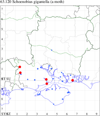 VC11: Blashford Lakes HIWWT NR, one, 10 Jun (PWhtk); Fordingbridge*, one, 07 Jul (SCT); Needs Ore NNR, one, 01 Jul (PCra); Portsmouth, one, 12 Jun; one, 22 Jun; one, 23 Jun; one, 26 Jun; one, 10 Aug (IRT); Needs Ore NNR, five, 10 Jun; one, 16 Jun (CNB)