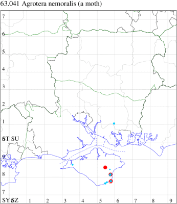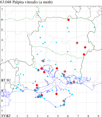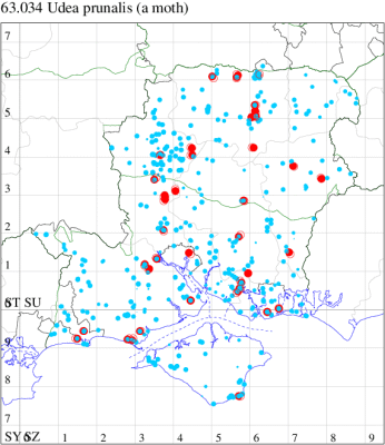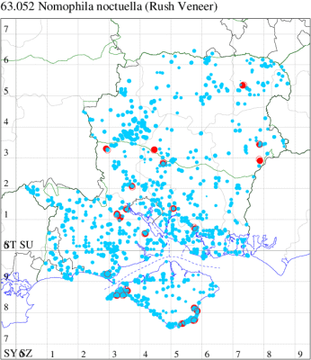 VC11: Marchwood, one, 17 Nov (CTh); Woodlands, New Forest, one, 20 Oct; one, 09 Nov (RBW); Totton, one, 10 Nov (LH); Romsey, one, 11 Aug (MB); Southampton, one, 07 Nov (MEdg); Fareham, one, 20 Oct; three, 08 Nov (KJW); Botley, one, to actinic, 08 Nov (SLB); Wickham Common, one, 08 Sep; one, 08 Nov (KC); Portsmouth, one, 22 Oct (IRT); Lovedean, one, 20 Oct; one, 08 Nov; two, 09 Nov (ARJ); Northney, Hayling Island, present, 08 Aug; present, 03 Sep; present, 16 Sep; present, 21 Oct (JWP); Milford on Sea, one, 02 Nov; one, 07 Nov (MMcM); Lymington, one, 10 Aug; one, 20 Aug; one, 24 Aug; one, 20 Oct; one, 29 Oct; one, 30 Oct; one, 22 Nov (ASH); Pennington, one, 19 Sep; one, 22 Oct (RFC); Southsea, one, 21 Oct; one, 24 Oct; one, 27 Oct; one, 28 Oct (JGe);
