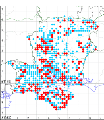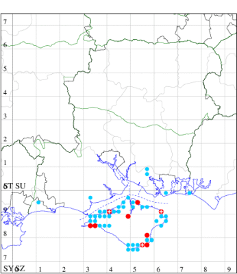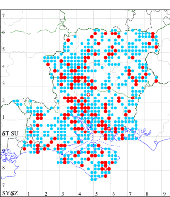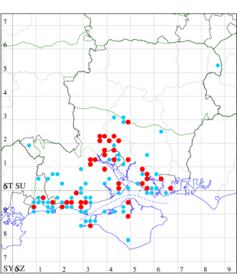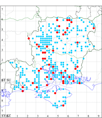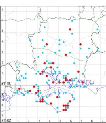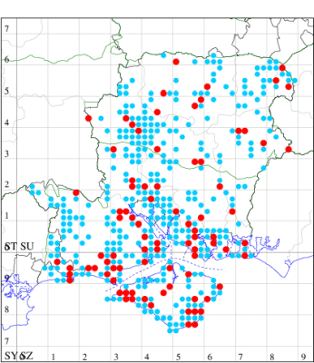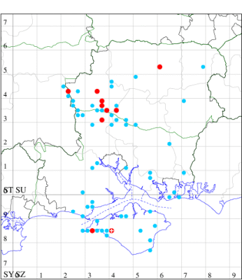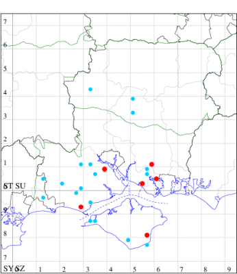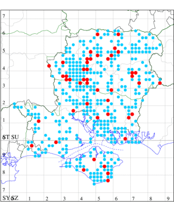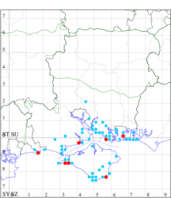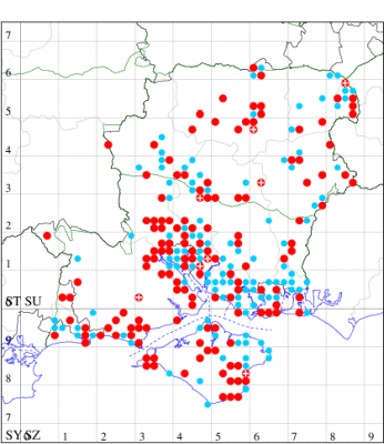 For the maps, all records prior to 2022 are shown by a blue dot (the larger the dot, the more recent), with the current year's records shown in red. As previous records are superimposed on any report for 2022, new sites have greater emphasis (i.e. will show as 'more red').