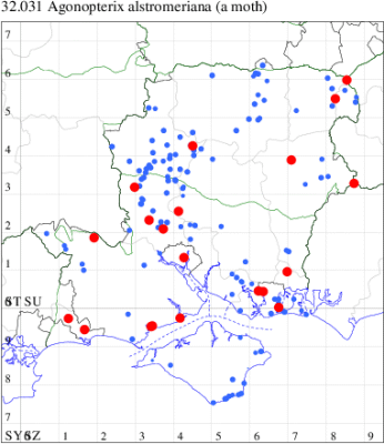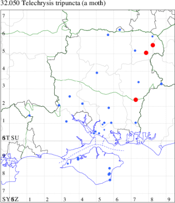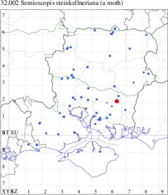 VC12: Cole Henley*, one, 27 Jul (GCE); Magdalen Hill Down NR*, one, gen. det., 23 Jul (AMD); Noar Hill HIWWT NR, Selborne*, two, 1m gen. det., 11 Aug; one, gen. det., 01 Sep (AMD, FHay det. AMD)