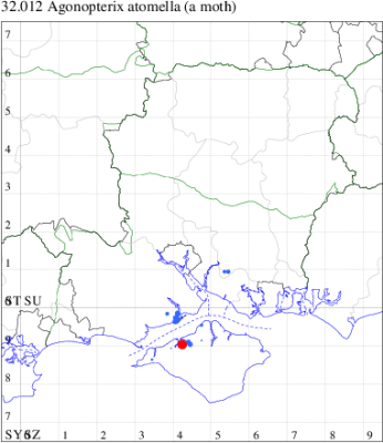 Local in heathland and open woodland throughout much of Britain. In Hampshire known only from Botley Wood, Fareham and Sinah Common Hayling Island, where rare and infrequent. Recorded for the first time on the Isle of Wight at Freshwater in 2009. Wingspan 18-21 mm. The main confusion species is A. atomella, in which the ground colour of the forewing is buff, variably suffused pinkish, and the two white discal dots are lacking or indistinct and never pure white (MBGBI Vol 4 part 1), but because of its scarcity, identity should be confirmed by dissection of the genitalia. Similar also to A. heracliana and A. subpropinquella, which see for differences. Larva feeds on Broom, living between shoots spun together with silk.