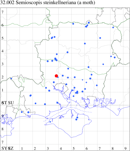 Local in lime woodland in the southern half of England and in mature birch woodland in Scotland and the northern half of England. There are few records of this species in Hampshire. most of which have been of single specimens, although the early flight period may lead to under-recording, and it is not a 'garden' insect. Not recorded from the Isle of Wight to date. Wingspan 20-26 mm. Similar to S. steinkellneriana, which see for differences. Larva feeds on Birch and Small-leaved Lime, living within a spun or rolled leaf, over-wintering as a pupa.