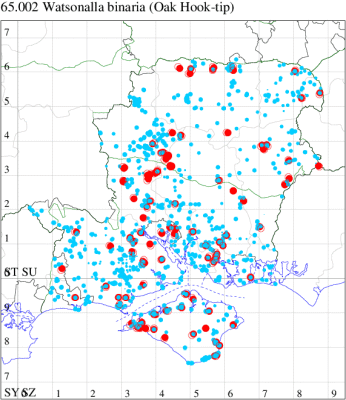 For the maps, all records prior to 2020 are shown by a blue dot (the larger the dot, the more recent), with the current year's records shown in red. As previous records are superimposed on any report for 2020, new sites have greater emphasis (i.e. will show as 'more red').