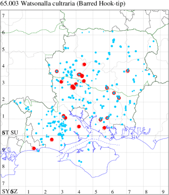 VC11: Denny Lodge, NF, present, 08 Sep (iNat); Woodlands, New Forest, present, 15 Sep (RBW); Ashurst, NF, three, 15 Sep (SAB); Kings Somborne, two, to actinic, 21 May; two, to actinic, 31 Jul; two, to actinic, 21 May; two, to actinic, 31 Jul; one, to actinic, 22 Jul; three, to actinic, 21 May; two, to actinic, 31 Jul; one, to actinic, 22 Jul; one, to actinic, 31 Jul; one, to actinic, 03 Sep; one, to actinic, 31 Jul; four, to actinic, 31 Jul; two, to actinic, 31 Jul; one, to actinic, 21 May; two, to actinic, 31 Jul; Broughton, one, to actinic, 31 Aug; Kings Somborne, one, to actinic, 08 Sep (GCE); Dibden Purlieu, one, 09 Sep; two, 16 Sep (RAC); Southampton, one, 14 Sep (MEdg); Botley Wood, one, 18 Sep (F.M.G. det. KJW); Fareham, one, 07 Aug (ADT); Wickham Common, one, ♀, 11 Sep (F.M.G.); Lovedean, one, 11 Aug (ARJ); West Meon, two, 31 Jul; Hen Wood, five, 24 Jul; 11, 04 Sep (F.M.G.); Tuckton, Bournemouth, one, 10 Aug (APar); Sway, one, 10 Sep (S&SL);