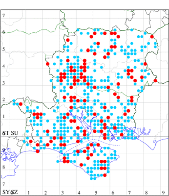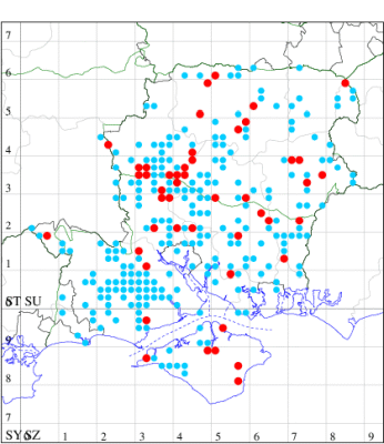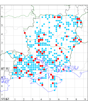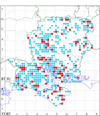 For the maps, all records prior to 2022 are shown by a blue dot (the larger the dot, the more recent), with the current year's records shown in red. As previous records are superimposed on any report for 2022, new sites have greater emphasis (i.e. will show as 'more red').