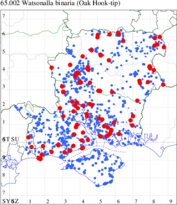 VC11: Brockwood, one, 21 Jul; one, 11 Aug (SDut); Ogden's Purlieu, NF, one, 17 Jun (AMD); Hale Purlieu, NF, one, 01 May; one, 10 Aug (JPuz); Marchwood, one, 24 Jul (TDCh); East Tytherley, one, 09 Aug; one, 09 Aug (GCE); Romsey, two, 11 Jun (NRJ); Winter Down Copse, Little Somborne, one, 31 Jul (GCE); Needs Ore NNR, one, 02 Jul; 10, 23 Jul (CNB); seven, 23 Jul (PCra); Dibden Purlieu, NF, one, 27 Jul; one, 12 Aug (RAC); Botley Wood, one, 28 Jul (F.M.G.); Stubbington, one, 10 Jun (DPH); Funtley, one, 21 Jun (TDC); Fareham, one, 13 May (KJW); Dean, Bishop's Waltham, present, 07 May; present, 14 Jul (CMor); Wickham, one, 07 Jul; one, 09 Jul; one, 20 Jul; one, 09 Aug (JRDS); Waterlooville, one, 03 Aug; one, 09 Aug; one, 11 Aug (DWhe); Hurn, one, 08 Jun; one, 15 Aug; one, 18 Aug; one, 12 Sep (MJef); Sopley Common, present, 28 Jun (RFox); Hengistbury Head, one, 23 Jul; one, 27 Jun (MJef); Ballard Meadow, New Milton, present, field observation, 13 Sep (RML); Tiptoe, Sway, one, 28 May; one, 17 Aug (S&SLan); Sway, one, 10 Jun (SKee); Pennington, one, 22 Aug (RFC); Needs Ore NNR, two, 09 Aug (CNB);
