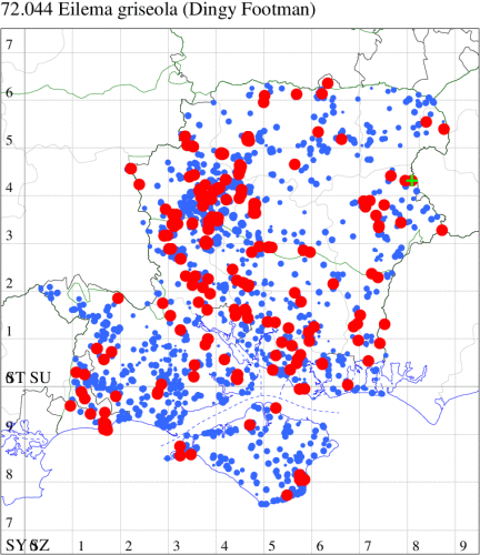 Nationally scarce (Nb) on sea cliffs and shingle beaches, and inland on quarries, from Kent to Anglesey. In Hampshire and on the Isle of Wight first recorded on the Island in 1992 and, on the mainland, in 1997, now increasingly seen in the north-east of the county where it is spreading from the east. Wingspan 28-35 mm. Very similar to Scarce Footman E. complana, but hindwing very pale yellowish grey (ochreous yellow in Scarce Footman), a feature which is difficult to see on live specimens. Larva feeds on various lichens, often on rocks.