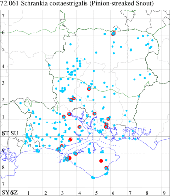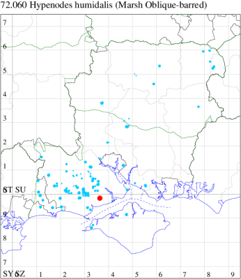 VC11: Woodlands, New Forest, present, 20 Jun (RBW); Totton, one, 06 Aug (LH det. MJW); Romsey, one, 07 Jun (SLay); one, 24 May; one, 26 Aug (NRJ); Dibden Purlieu, one, to actinic, 06 Aug; one, 04 Sep (RAC); Winchester, one, 21 Aug (THW); Fareham, one, 29 Sep (IMcP); one, to actinic, 16 Jun; one, to actinic, 08 Sep; two, to actinic, 09 Sep (MLO); one, 10 Aug; one, 13 Aug (KJW); Botley, one, to actinic, 16 Jun; one, to actinic, 15 Aug; one, to actinic, 15 Oct (SLB); Wickham Common, one, 07 Sep (KC); Wickham, one, 07 Jun; two, 12 Jun; one, 23 Jun; one, 02 Jul; one, 03 Aug; one, 14 Aug; one, 07 Sep; one, 15 Sep (JRDS); Sway, one, 19 May (SKe); Milford on Sea, one, 09 Aug (MMcM); Pennington, one, 14 Sep (RFC); Norleywood, NF, present, 09 Aug (RBW, MWa);