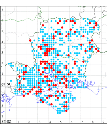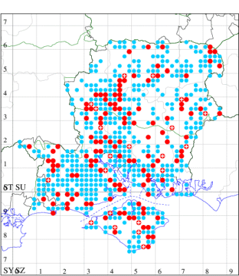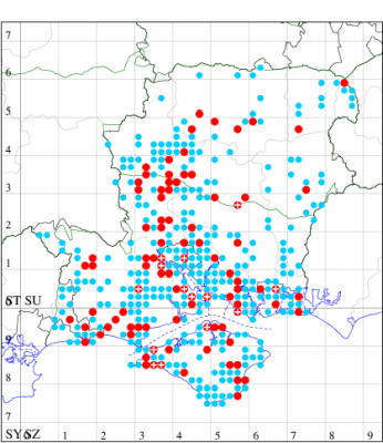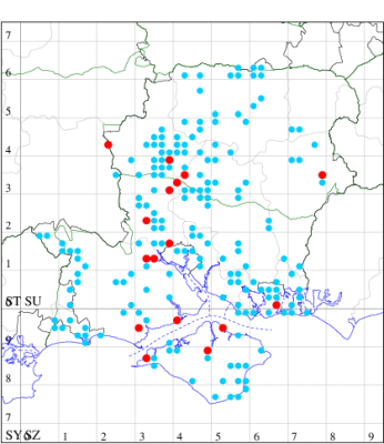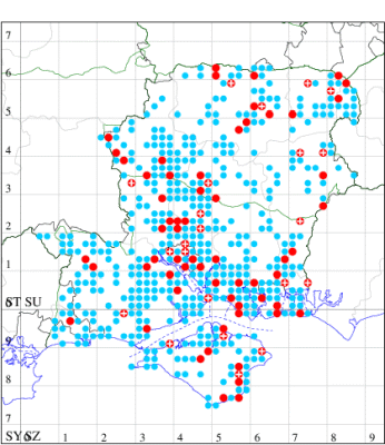 For the maps, all records prior to 2022 are shown by a blue dot (the larger the dot, the more recent), with the current year's records shown in red. As previous records are superimposed on any report for 2022, new sites have greater emphasis (i.e. will show as 'more red').
