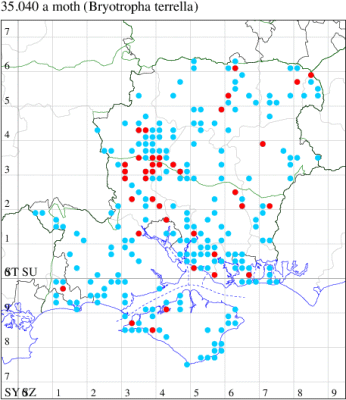 VC12: Harestock, two, 19 Jul; one, 24 Jul; one, 04 Aug; one, 12 Aug; two, 16 Aug; one, 17 Aug; one, 18 Aug; one, 26 Aug; one, 07 Sep; one, 10 Sep; one, 14 Sep (GRog); Basingstoke, one, 01 Jun; one, 06 Jun; two, 10 Jun; one, 12 Jun; one, 19 Jul; one, 25 Jul; three, 26 Jul; two, 10 Aug; two, 21 Aug; one, 22 Aug (MJW); two, 01 Jun; two, 12 Jun; one, 14 Jun; two, 14 Jul; one, 18 Jul; one, 14 Aug (RHil); Alton, one, indoors, 15 Jun (BCA); one, 06 Jun; one, 20 Jul; one, 22 Jul; one, 25 Jul; two, 27 Jul; one, to artificial light, 31 Jul; one, to artificial light, 14 Aug; one, to artificial light, 15 Aug (DBO); Whitehill, one, 02 Jun; one, 06 Aug (ASto); Blackwater, one, 09 Jun; one, 21 Jul; two, 14 Aug (BDal)