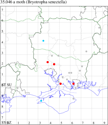 VC11: Needs Ore NNR, two, 21 Jul; one, 17 Jul; one, 29 Jul (CNB); Browndown Coastal Ranges, one, male, retained, genitalia 10,420), 26 Aug (RJD, MLO, ADT & KJW det. RJD)