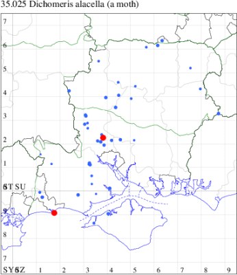 Nationally scarce (Nb) on chalk and limestone downland and roadside verges in southern England and south Wales. Restricted in Hampshire to sites such as Old Winchester, Portsdown and Magdalen Hill Down, and on Isle of Wight to a single site near Ventnor; claims from other areas of the county should be accompanied by photographic or other evidence. Wingspan 15-17 mm. Larva feeds on Wild Marjoram, living within a spun or rolled leaf.