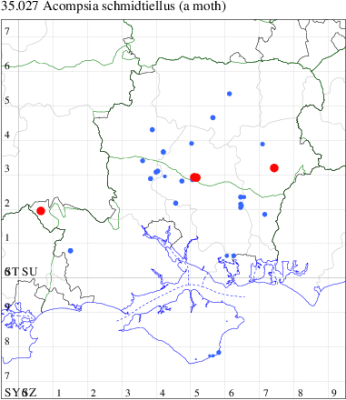 VC11: Marchwood, one, 30 Jun; Lee, one, 01 Jul; two, 14 Jul; one, 21 Jul (CTha); Fishlake Meadows, one, 13 Jul; Romsey, one, 09 Jul (NRJ); Needs Ore NNR, one, 01 Jul (PCra); two, 23 Jul (CNB); Botley, one, 23 Jul (SLB); Portsmouth, three, 20 Aug; one, 24 Aug; two, 05 Sep; three, 06 Sep; two, 07 Sep; one, 09 Sep; one, 10 Sep (IRT); Horndean, one, 04 Aug (PHog); Hengistbury Head, one, 19 Jul; two, 23 Jul (MJef); Needs Ore NNR, one, 01 Jul; two, 24 Jul (PCra);