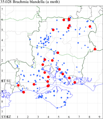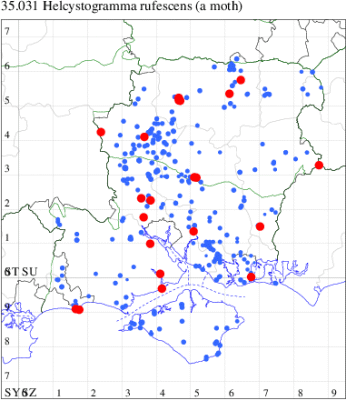 VC11: Marchwood, one, 20 Jun; one, 08 Jul; Lee, one, 17 Jun (CTha); Romsey, one, 09 Jul (NRJ); Needs Ore NNR, two, 02 Jul (CNB); two, 02 Jul (PCra); one, 23 Jul (CNB); two, 23 Jul (PCra); Dibden Purlieu, NF, one, 19 Jun (RAC); Allbrook, one, 18 Jul (SIng); Funtley, one, 24 Jun (TDC); Curdridge, one, 08 Jul (JCol); Portchester, one, 11 Jul (DH-J); Portsmouth, one, 11 Aug; one, 09 Sep (IRT); Hurn, one, 13 Jun; one, 26 Jun; one, 11 Jul; Hengistbury Head, one, 23 Jul; one, 27 Jun (MJef); Sway, one, 09 Jul (SKee); Needs Ore NNR, one, 30 Jun; four, 10 Jun; six, 16 Jun; one, 24 Jul (CNB); one, 24 Jul; one, 24 Jul (PCra);