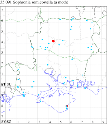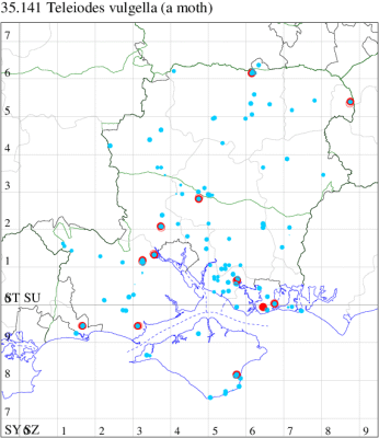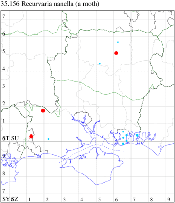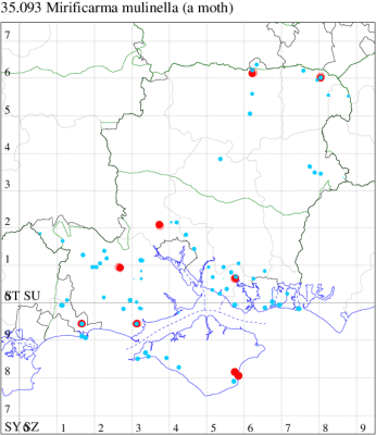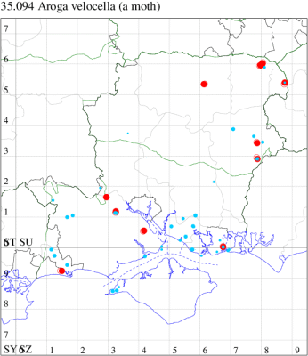 VC11: Marchwood, one, 20 Jun; one, 24 Jun (CTh); Woodlands, New Forest, present, 25 Jun (RBW); Romsey, one, 09 May (NRJ); Eastleigh, one, to actinic, 23 Jun (KArb); Fareham, one, to actinic, 24 Jun; one, to actinic, 10 Aug (MLO); Sway, one, 25 Jun (SKe); Pennington, one, 23 Jul (RFC);