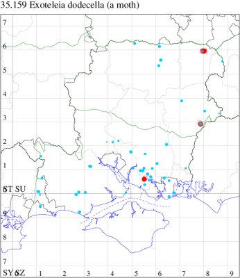 Local in pine woodland and plantations throughout much of the British Isles, except for the Northern Isles. Probably under-recorded in Hampshire, where the extent of known records correlate with those areas in which the recording effort is concentrated; there have been no recent records from the New Forest. Not recorded from the Isle of Wight since 1900. Wingspan 12-15 mm. When worn, resembles several other gelechiids, from which only reliably separated by dissection of the genitalia. Larva feeds within needles of Scots Pine, Corsican Pine and Maritime Pine, subsequently living within a silken web, causing sufficient damage to be a serious pest in some areas.