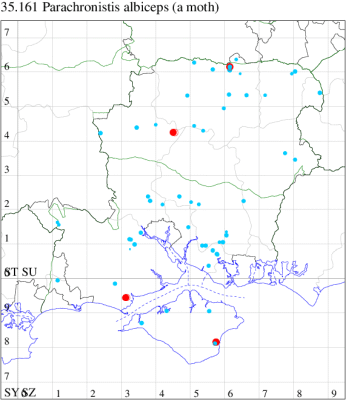 VC11: Totton, one, 28 May; one, 30 May; one, 15 Aug (LH); Ashley, one, to actinic, 22 Sep (GCE); Allbrook, one, 16 May (SI); Wickham, one, 16 May; one, 17 May (JRDS); Portsmouth, one, 19 May; one, 23 May; one, 02 Jun; one, 13 Jun; one, 22 Jun; one, 13 Jul; one, 16 Jul; two, 18 Jul; three, 23 Jul; one, 24 Jul; one, 29 Jul; one, 05 Aug; two, 07 Aug; one, 08 Aug; one, 12 Aug; one, 13 Aug; one, 21 Oct; one, 17 Nov (IRT); Tuckton, Bournemouth, one, 28 Sep (APar); Burton, nr Christchurch, one, 11 Aug (JSw); Milford on Sea, one, 07 Apr (MMcM); Southsea, one, 17 Jul (JGe); one, 09 Apr; one, 16 Apr; two, 06 May; one, 15 May; one, 02 Jun; one, ♂ gen.det., 10 Nov (JRL);