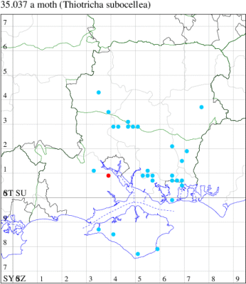 For species seen in 2021 that had less than or equal to 100 records, full details are included; for more common species, the earliest, latest and highest count by vice-county are shown. The narrative for each species is taken from the main Hantsmoths website, and it is possible that some information on abundance and occurrence can get out of date, as it is impossible to keep up with all changes; however it should give a good introduction to each species. The tables in each species account summarise the previous status, and that for the current year.