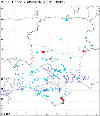 VC10: Earliest: Shanklin, 07 Jun, 1 (IOu) Latest: Shanklin, 14 Aug, 1 (IOu) Max count: West High Down Quarry, 07 Aug, 15 (IOu)