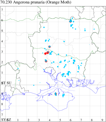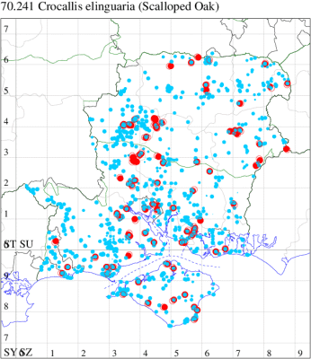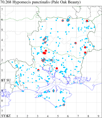 VC11: Culverley, NF, two, 19 Jul (CL); Ashurst, NF, one, 03 May; one, 08 Aug; two, 10 Aug (SAB); Totton, one, 07 Aug (LH); Romsey, one, 11 Aug (MB); Kings Somborne, one, to actinic, 11 Jun; one, to actinic, 11 Jun; one, to actinic, 31 Jul; one, to actinic, 11 Jun; three, to actinic, 31 Jul; four, to actinic, 21 May; three, to actinic, 31 Jul (GCE); Dibden Purlieu, one, to actinic, 11 Aug; one, to actinic, 14 Aug (RAC); Eastleigh, one, to actinic, 31 Jul (KArb); Kings Somborne, one, to actinic, 26 May (GCE); Fareham, one, 12 Aug (KJW); Wickham, one, 07 Aug (F.M.G.); Botley, one, to actinic, 10 Aug (SLB); Wickham, one, 23 Jul; one, 24 Jul; one, 01 Aug; one, 02 Aug; one, 07 Aug; one, 08 Aug; four, 09 Aug; three, 10 Aug; two, 11 Aug; one, 14 Aug; one, 22 Aug (JRDS); Portsmouth, one, 11 Jul (IRT); West Walk, four, 14 Aug (F.M.G.); Northney, Hayling Island, present, 14 Aug (JWP); Bransgore, NF, one, to actinic, 29 Jul (JHC);