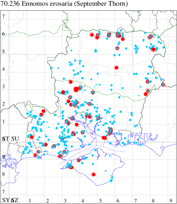 VC10: Freshwater, one, to actinic, 18 Sep; one, to actinic, 19 Sep; one, to actinic, 18 Sep; one, to actinic, 14 Sep; one, to actinic, 15 Sep (PBa); Cranmore, present, to actinic, 11 Sep (CHic); Kingston, one, 24 Jun (ENes); Broadley Copse, one, to actinic, 25 Jun (JBa);