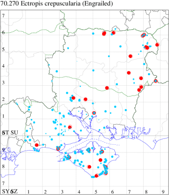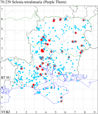 VC10: Earliest: Wheelers Bay, 09 Apr, 1 (ABu) Latest: Shanklin, 18 Aug, 1 (IOu) Max count: Parkhurst Forest, 28 Jul, 8 (IOu)