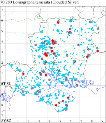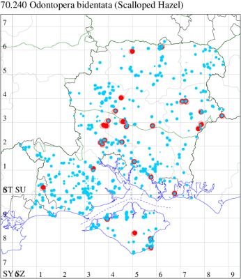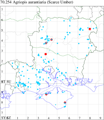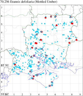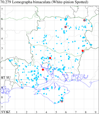 VC11: Earliest: Winter Down Copse, King's Somborne, 06 May, 1 (TJN, LF) Latest: Totton, 23 Aug, 2 (LH) Max count: Southampton, 08 Jun, 3 (MEdg)