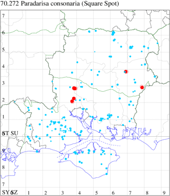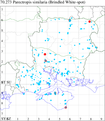 VC11: Earliest: Romsey, 19 May, 1 (SLay) Latest: Pennington, 14 Sep, 1 (RFC) Max count: Titchfield Haven NNR, 17 Jul, 11 (F.M.G.)